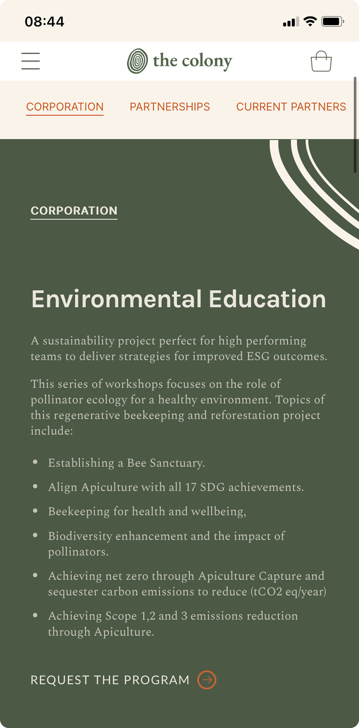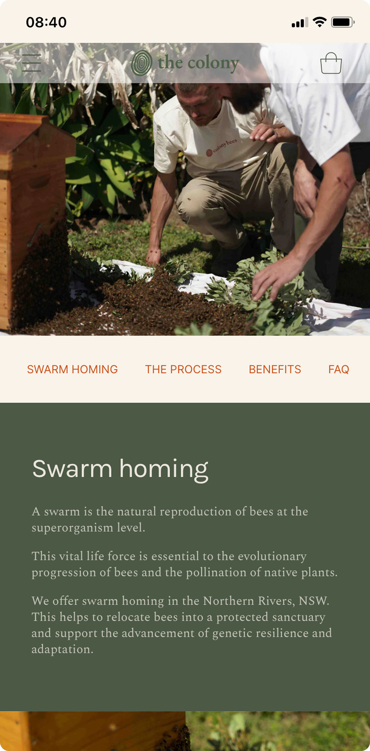 Colony Bees came to us with a mission: to grow their online presence and inspire more people to engage with their work. Whether it’s becoming a member, making a donation, purchasing merchandise or even installing a hive, they wanted to create more pathways for people to get involved. At its core, the goal was simple: to be seen, heard, and supported as they continue their vital work protecting pollinators and restoring balance to the land.