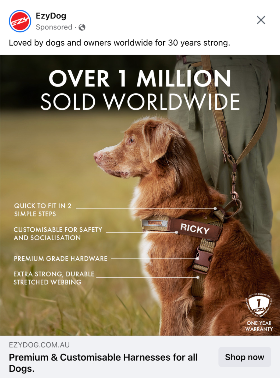 EzyDog aimed to enhance their Paid Media strategy on Meta to drive engagement and online sales of their premium pet products. They sought targeted campaigns that resonate with dog owners, showcasing their unique offerings. By leveraging data-driven insights, EzyDog wanted to optimise ad placements and audience targeting to effectively convert viewers into loyal customers while promoting their commitment to quality and active pet lifestyles.