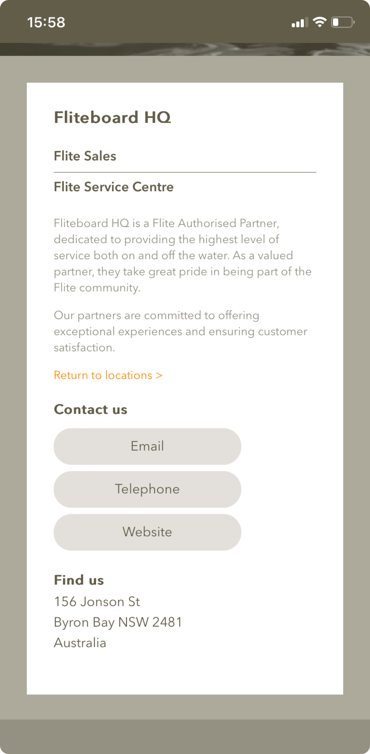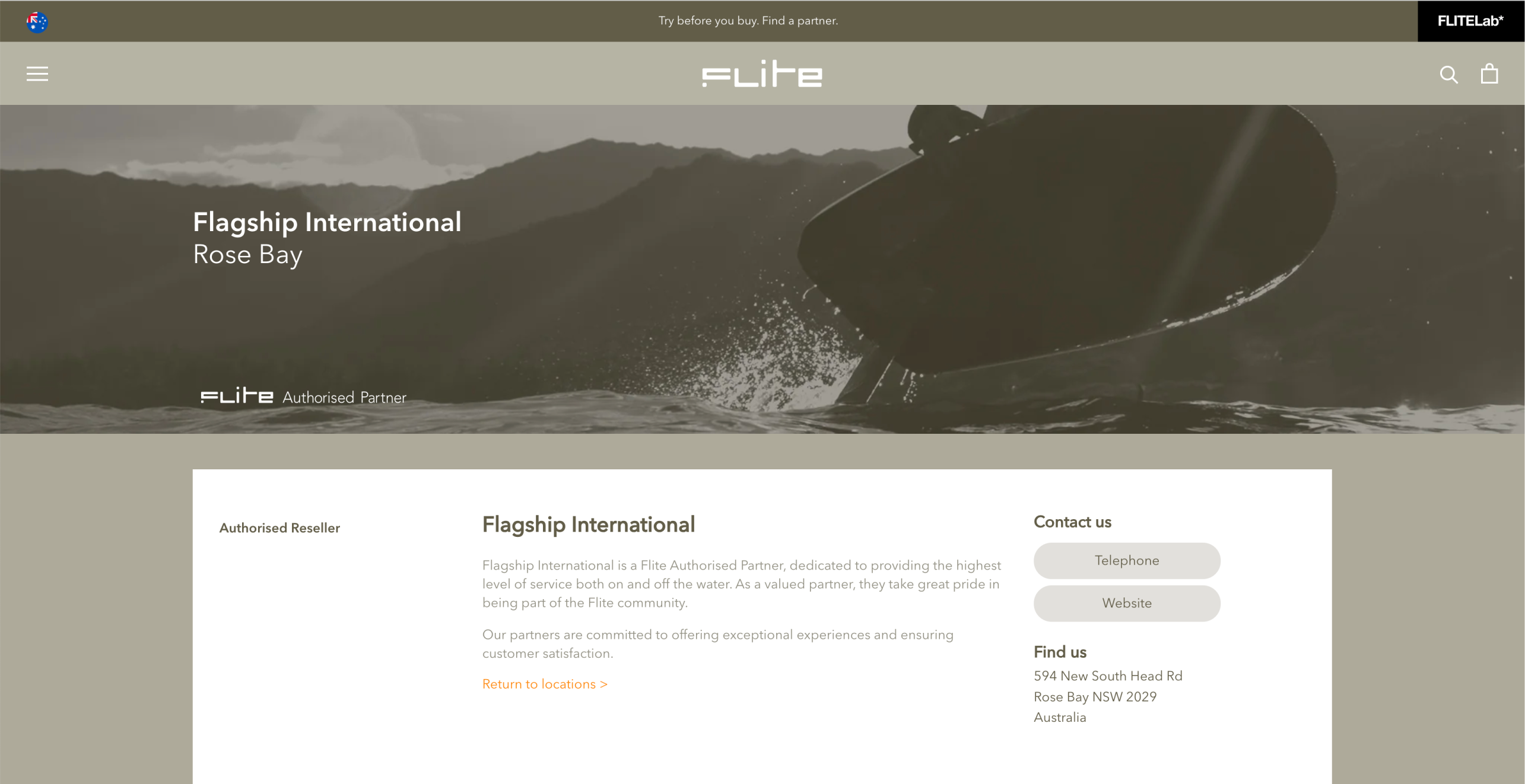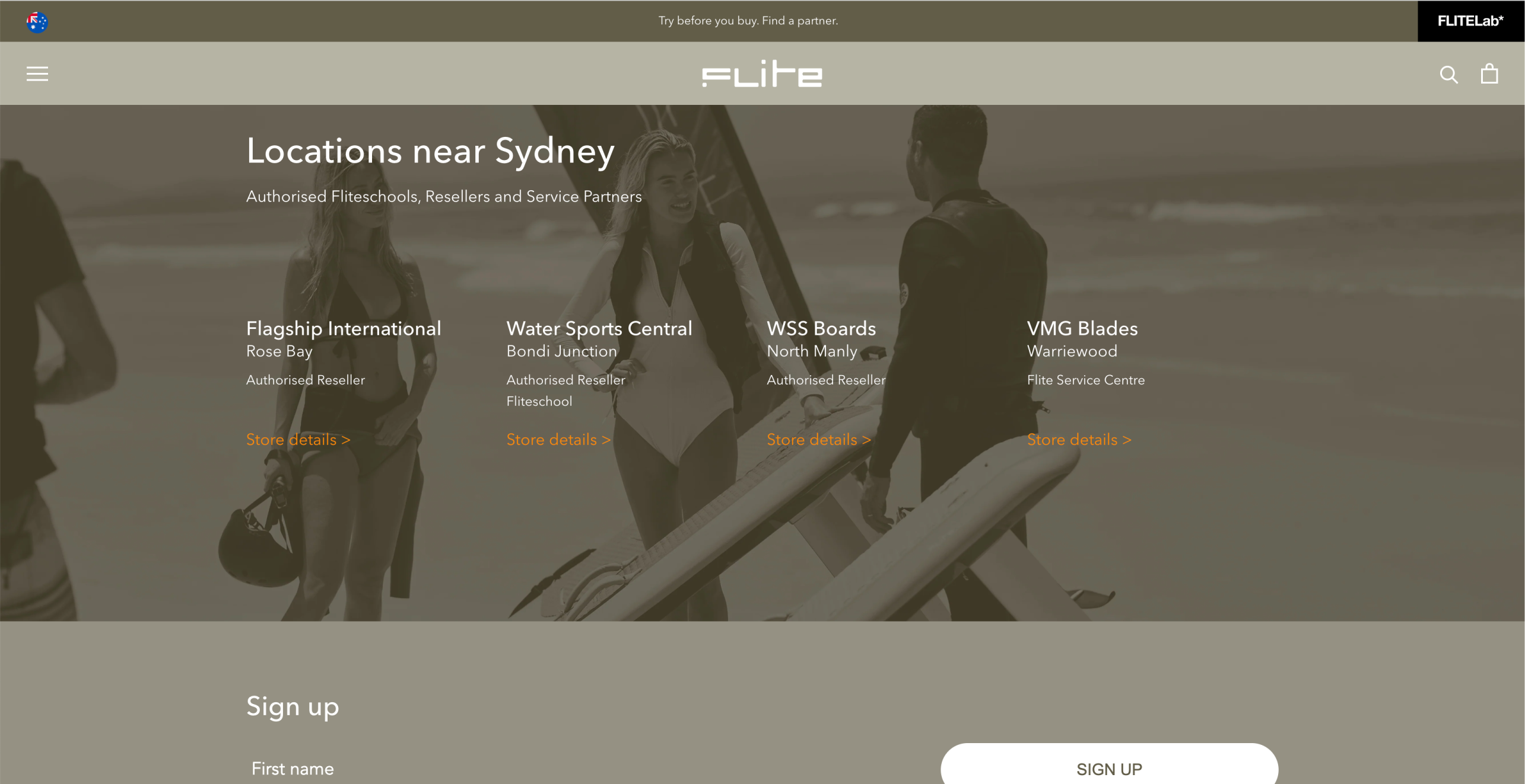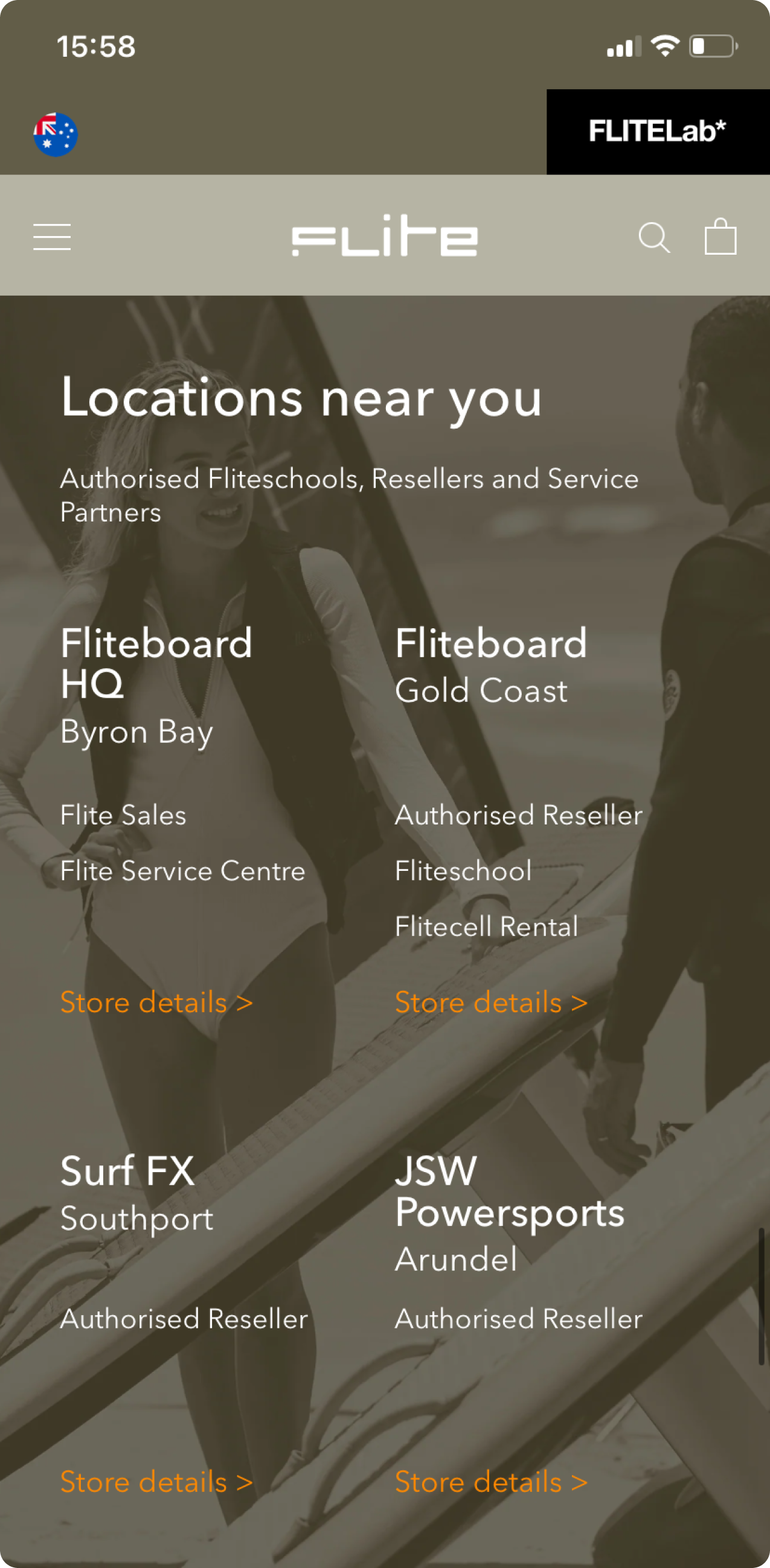 With a rapidly growing global presence, Fliteboard needed an intuitive and efficient way to help users locate stores and service centers near them, without requiring manual input. They were looking to improve their current workflows and operating systems, particularly in regards to their location management and how the information should be displayed to the users, using geolocation services and the concept of platinum (priority) partners.