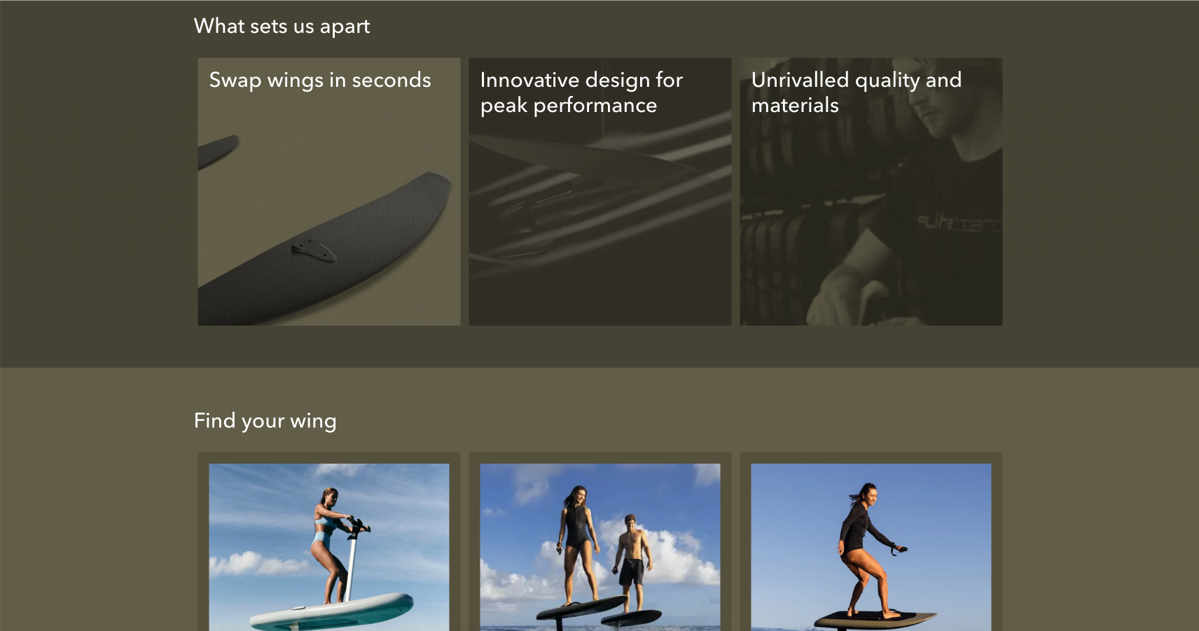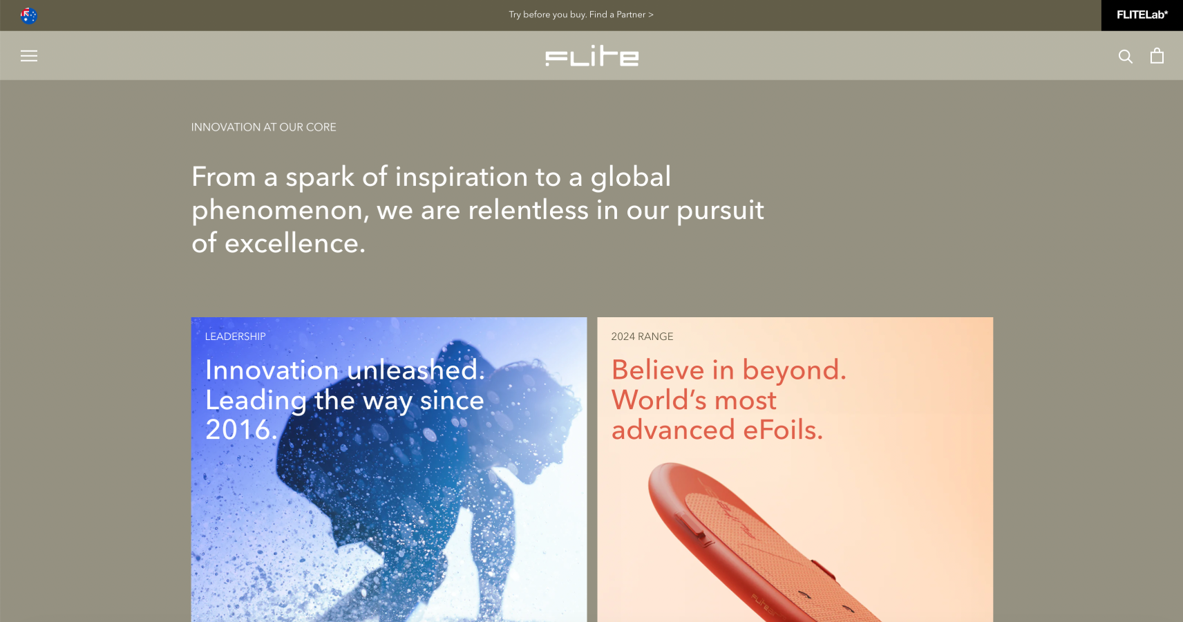 Fliteboard’s history started in 2017 with an initial focus on raising awareness of their product, and generating custom deposit-based orders, and the original website was developed with this purpose in mind. Not being a fully functioning e-commerce website, when the business began to evolve and grow, and the market and their customers became more demanding, numerous operational challenges began to arise. Fliteboard recognised the need to migrate to a powerful ecommerce platform in order to overcome these challenges, and partnered with 30Acres to undergo a migration to Shopify Plus.