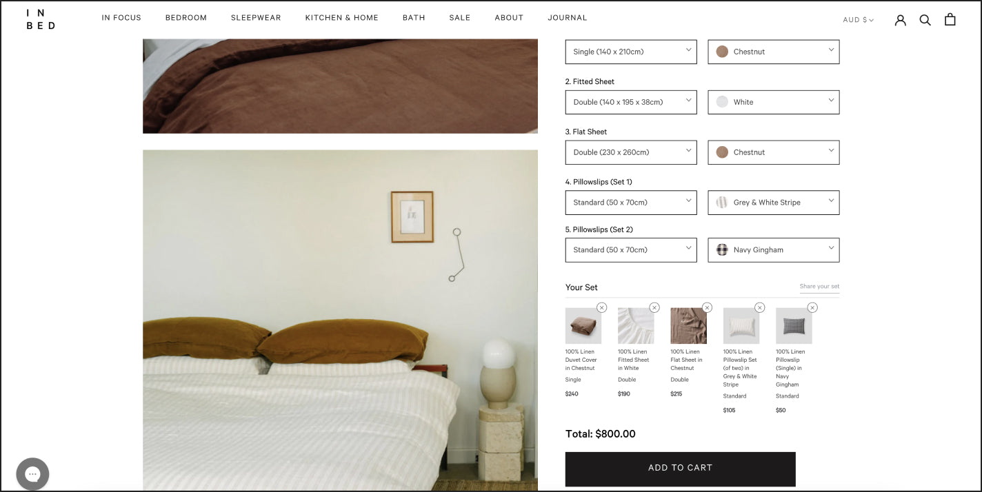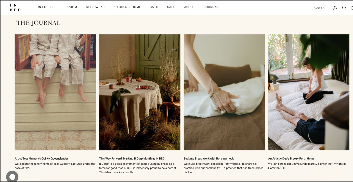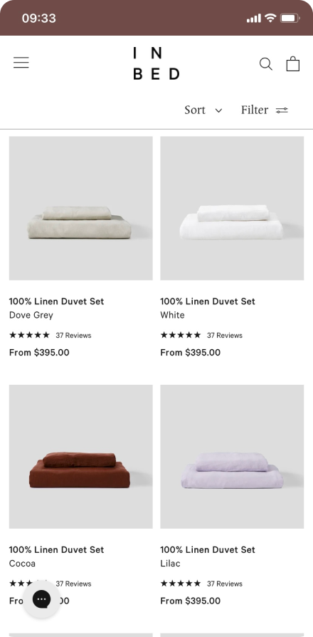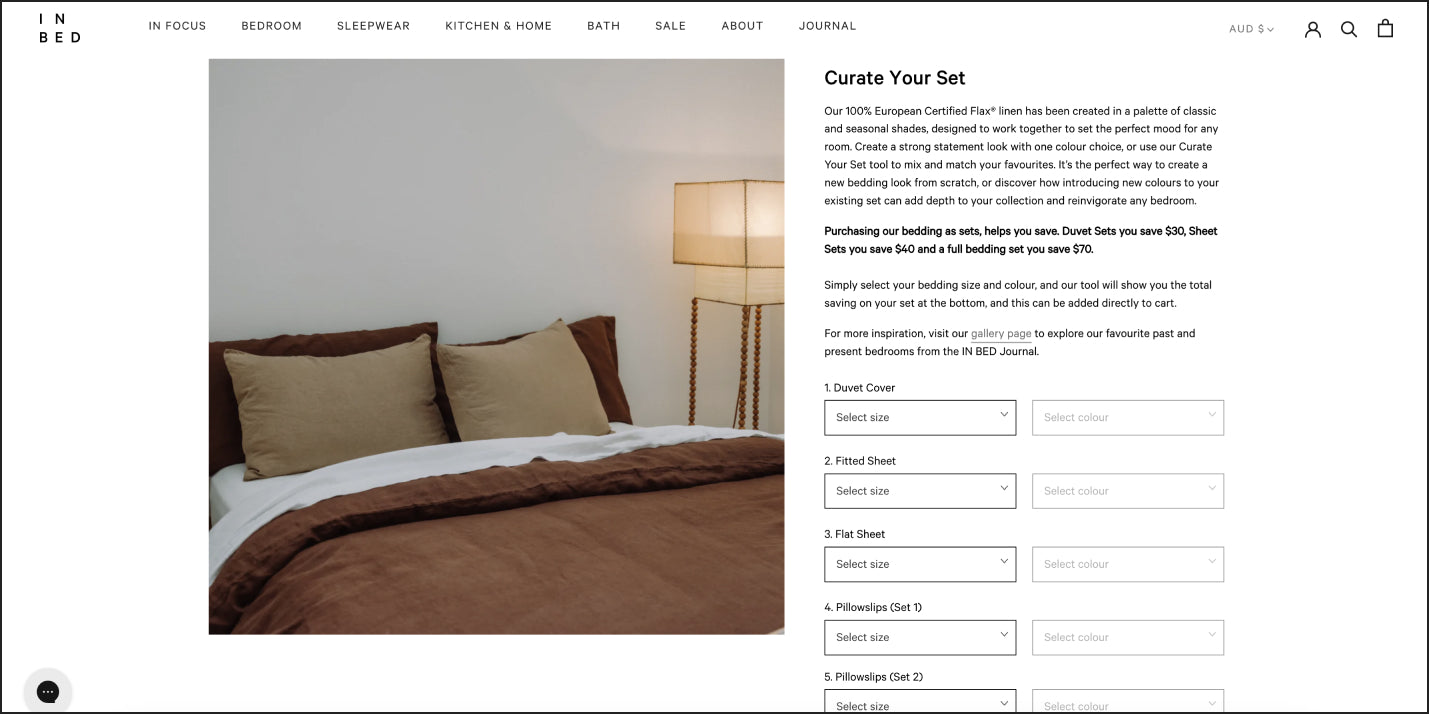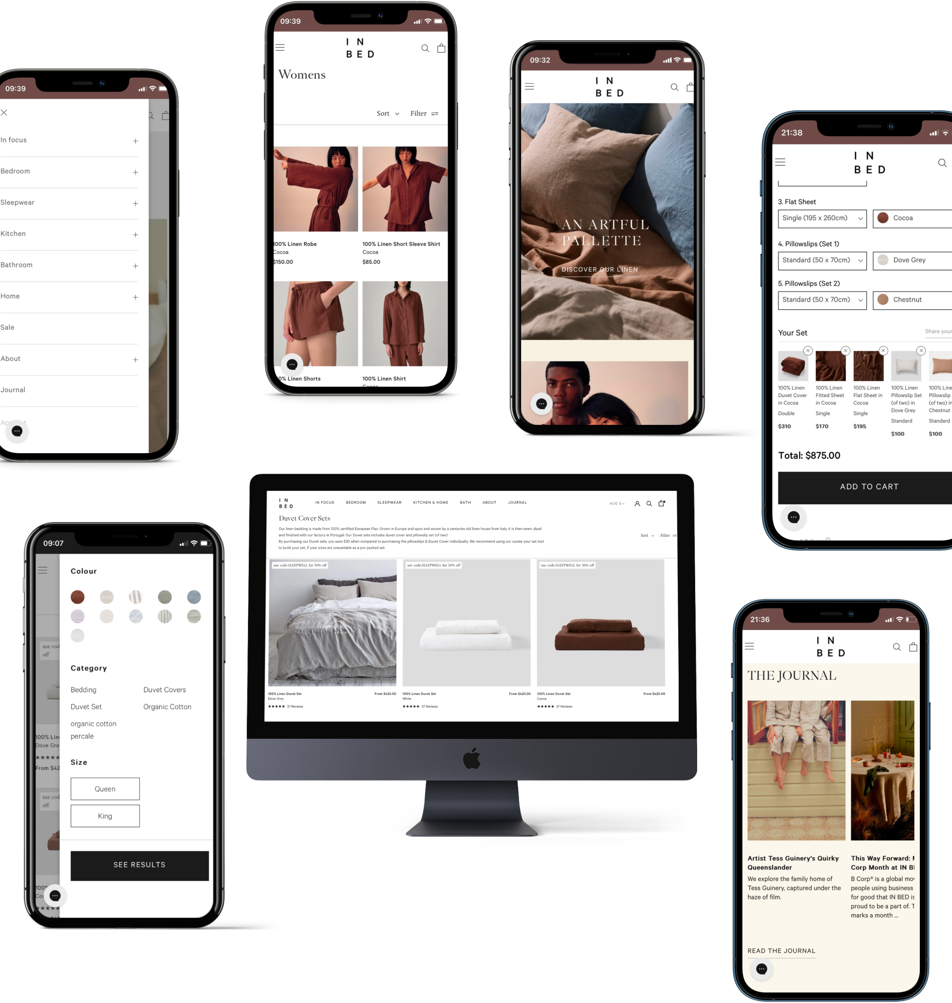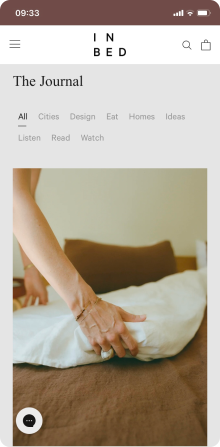 and page templates to make the most of the Shopify 2.0 upgrades, migrating from WooCommerce. The objective of the design updates and the migration were to give IN BED more flexibility with content, marketing management and to improve the experience for users on the website whilst reflecting the brand refresh for a more editorial look.