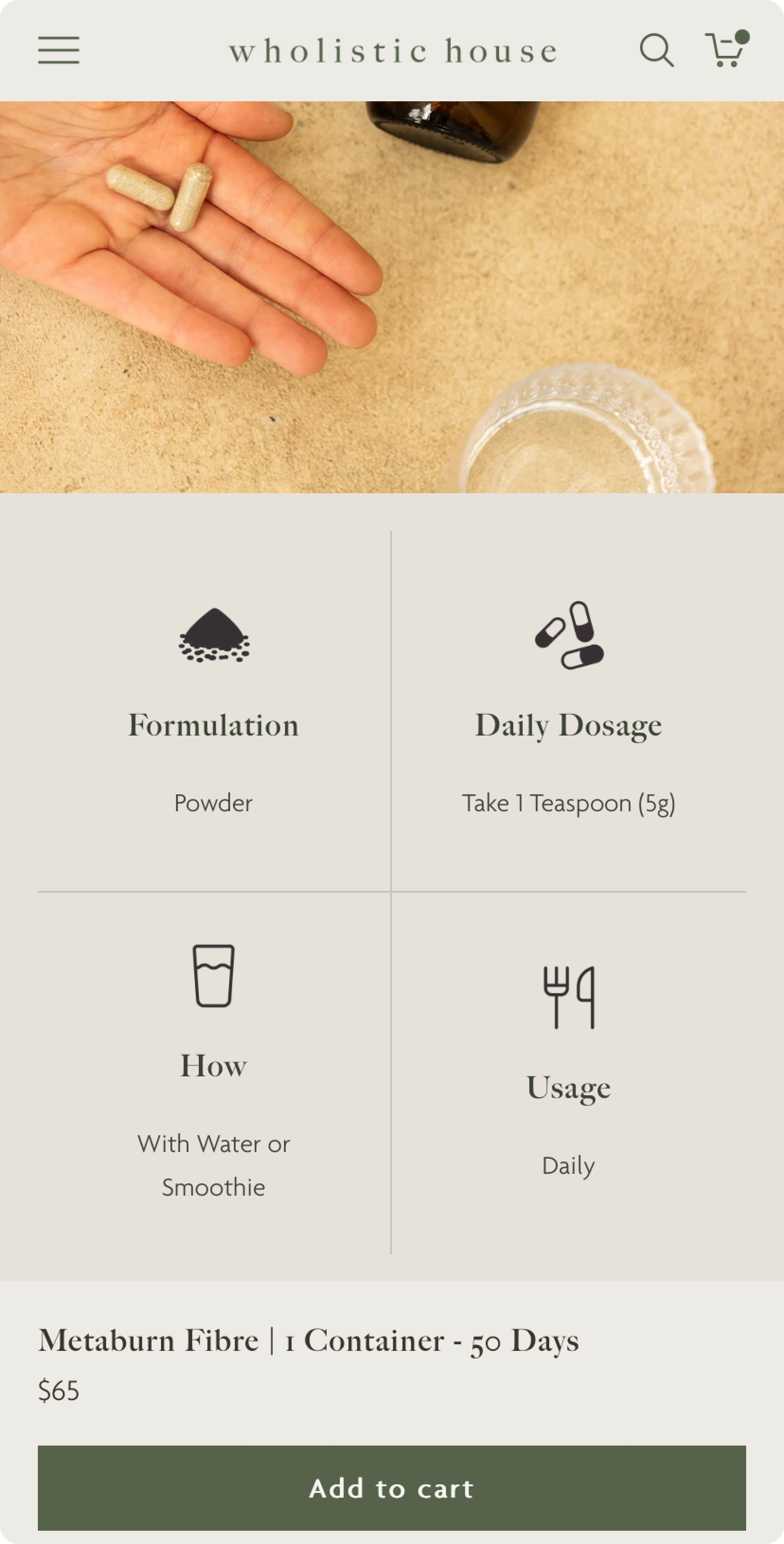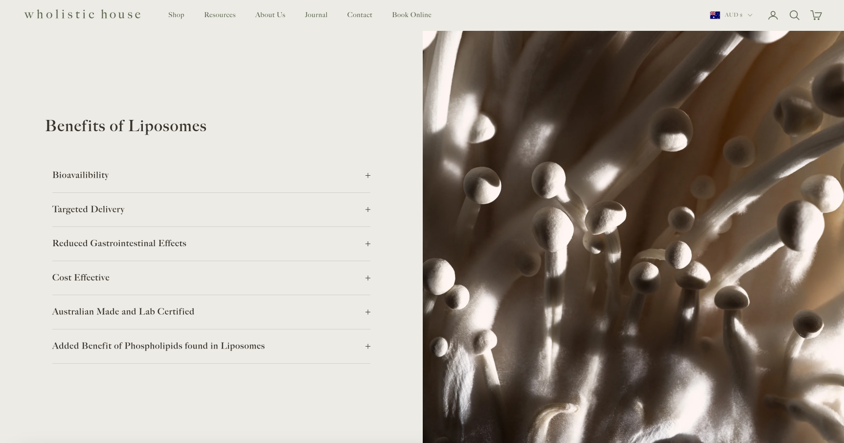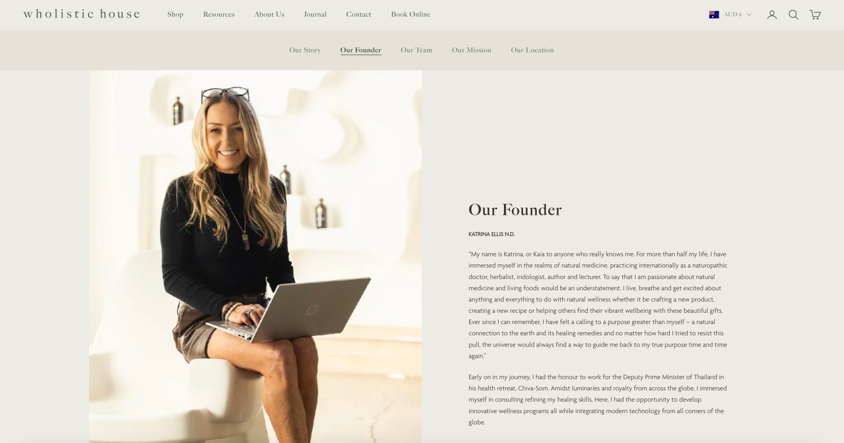 Wholistic House, led by Katrina Ellis N.D., seeks to transform their online presence to better reflect their brand's ethos of natural, organic, and high-quality wellness solutions. With over 30 years of clinical experience, Katrina’s reputation drives customer trust and loyalty. However, their current website’s clunky shopping process—with limited payment options like PayPal and Afterpay—hinders conversions. The goal is to modernise the website’s design and functionality, making it a streamlined, user-friendly platform that resonates with their audience and showcases their Australian-made products. By enhancing the online shopping experience, Wholistic House aims to reach a broader market and increase sales, particularly for their popular Liposomal Mushrooms.