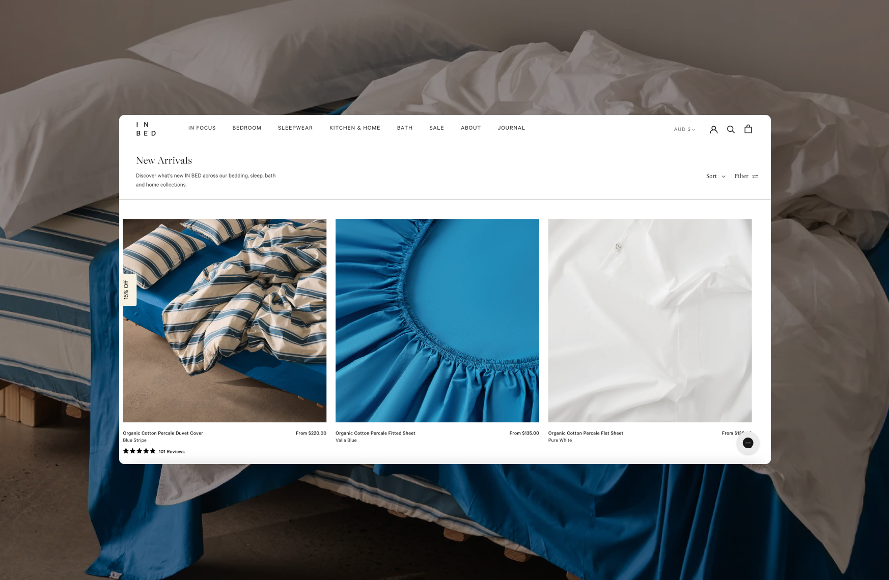 The purpose of this project was to refresh the current website by designing new sections and page templates to make the most of the Shopify 2.0 upgrades. The objective of the design updates and the migration were to give IN BED more flexibility with content, marketing management and to improve the experience for users on the website whilst reflecting the brand refresh for a more editorial look.